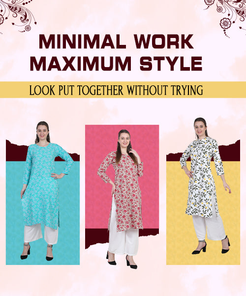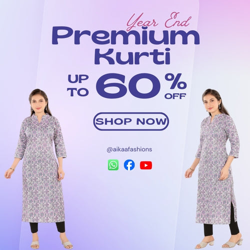 Elevate your wardrobe with this stunning digital print straight kurti in mesmerising purple and white leaf patterns. The premium cotton fabric ensures breathability and comfort throughout the day, making it perfect for various occasions. The...