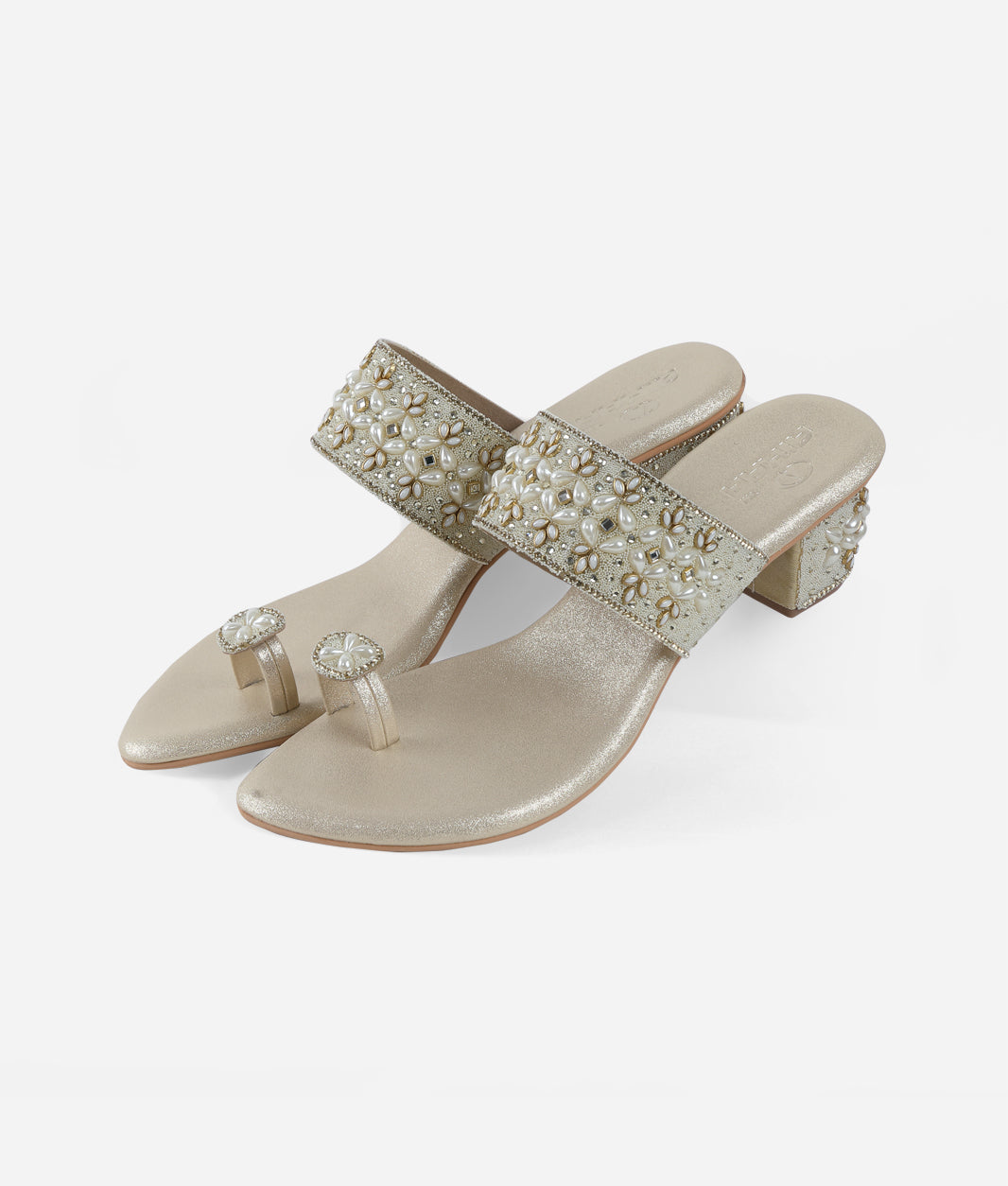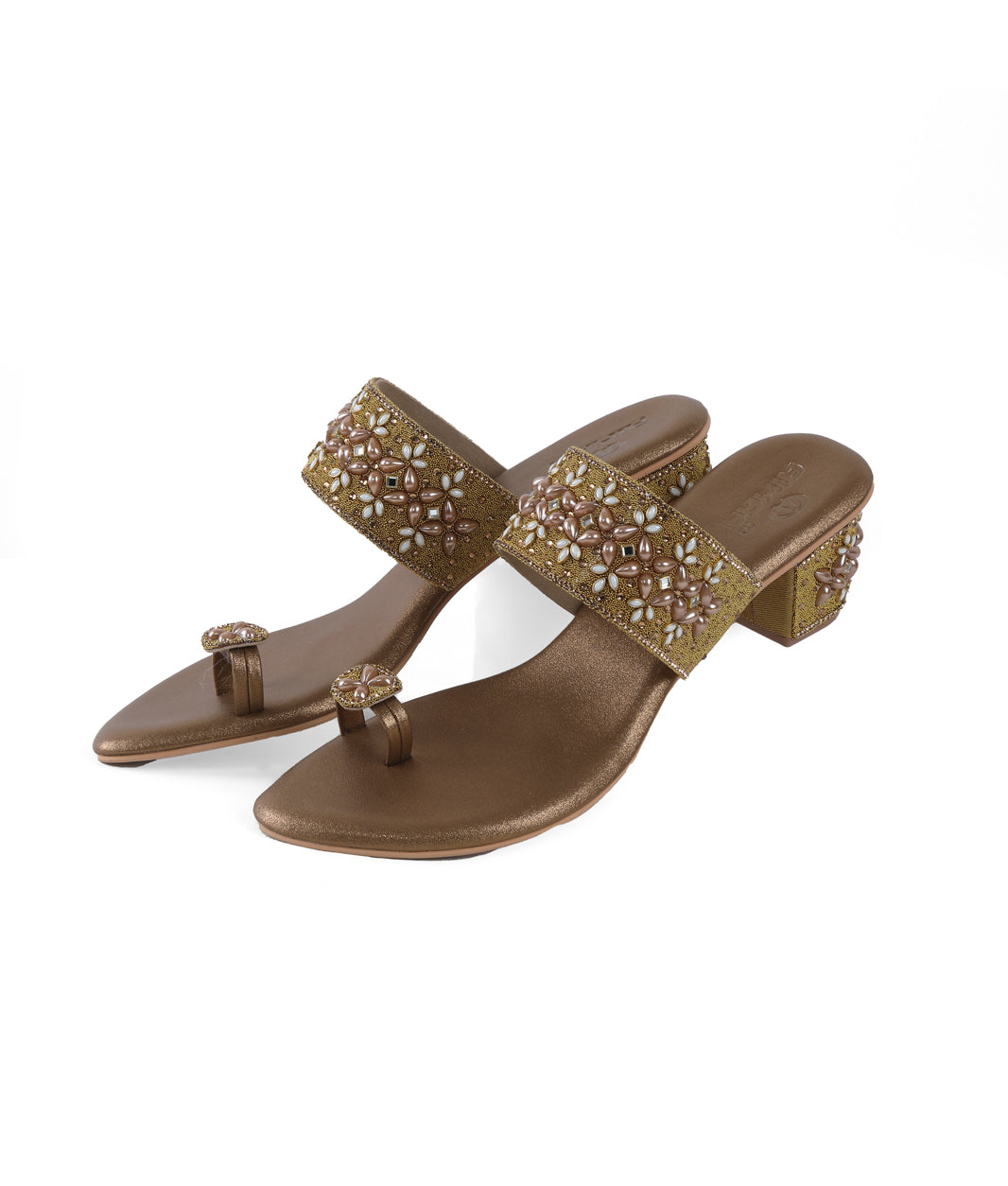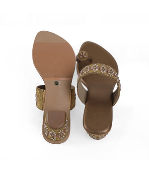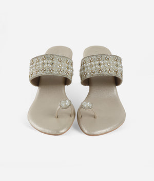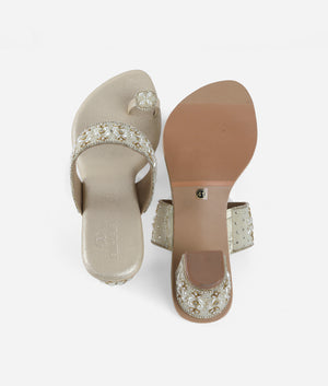 Designed to elevate festive and occasion wear, this beautifully crafted toe-ring sandal features intricate embellishments that add a luxurious and elegant appeal. The detailed strap design enhances its refined look, making it an ideal choice for celebrations, weddings, and special gatherings. The cushioned footbed ensures lasting comfort, while the sturdy block heel provides balanced support and stability. Crafted for ease and sophistication, this slip-on style allows effortless wear without compromising on elegance. The thoughtful construction makes it suitable for extended wear during long events. Versatile and stylish, it pairs seamlessly with ethnic attire as well as modern outfits, making it a statement addition to any footwear collection.