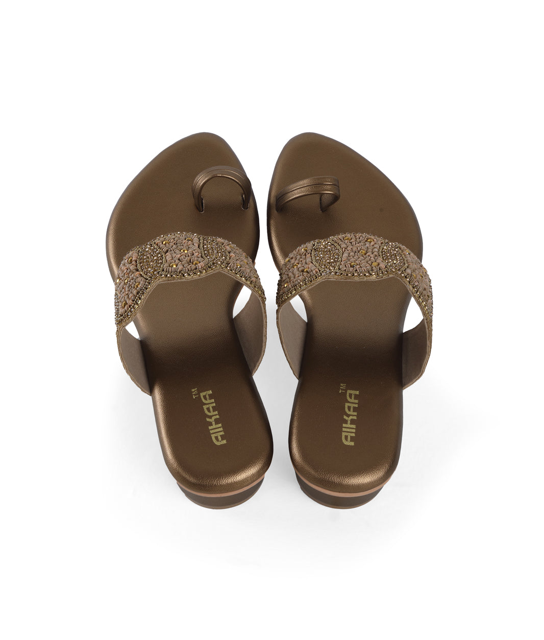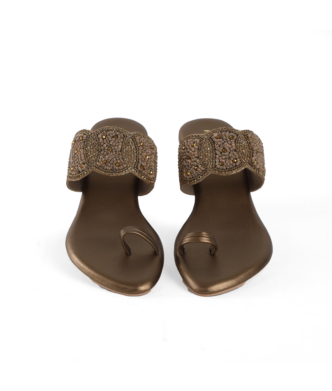 Add a touch of elegance and sophistication to your footwear collection with this beautifully designed slip-on footwear. Crafted to offer both style and comfort, this pair features a finely embellished upper with intricate handcrafted detailing that enhances its graceful and luxurious appeal. The delicate surface work adds a refined finish, making it ideal for festive occasions, celebrations, and elegant everyday wear.