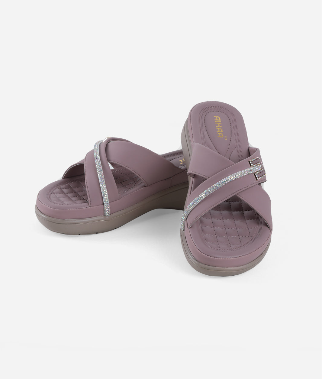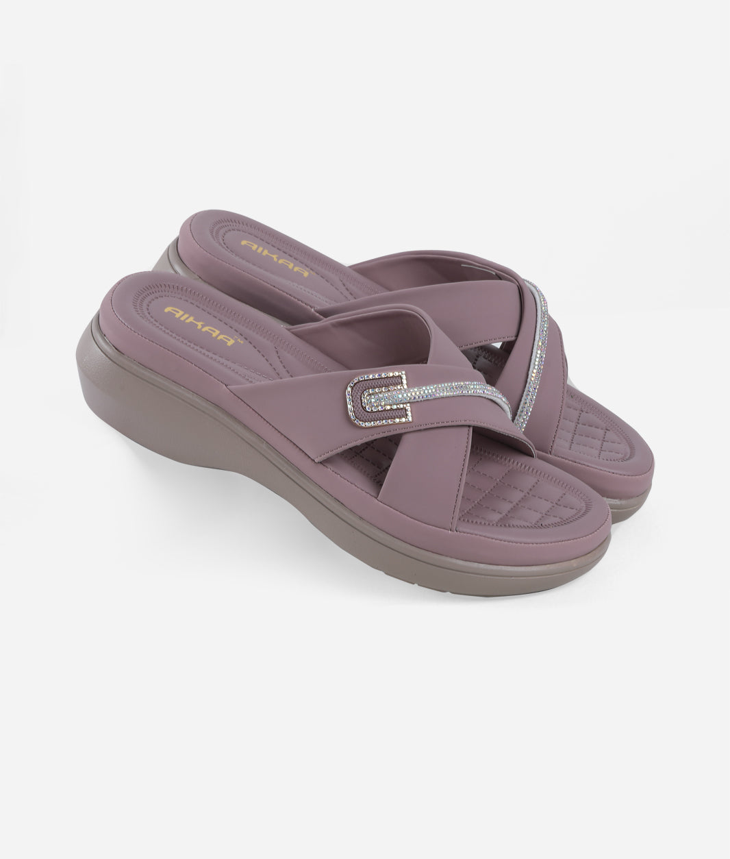 Designed for women who appreciate comfort with a touch of elegance, this slip-on footwear features a stylish cross-strap design enhanced with subtle crystal detailing. The refined look makes it suitable for both everyday wear and special casual occasions. A soft cushioned footbed offers lasting comfort, while the lightweight wedge sole ensures balance and stability throughout the day. Crafted for ease and versatility, this pair supports long hours of wear without causing fatigue. Easy to slip on and effortless to style, it pairs beautifully with ethnic outfits, western wear, or casual ensembles—making it a reliable choice for modern lifestyles.