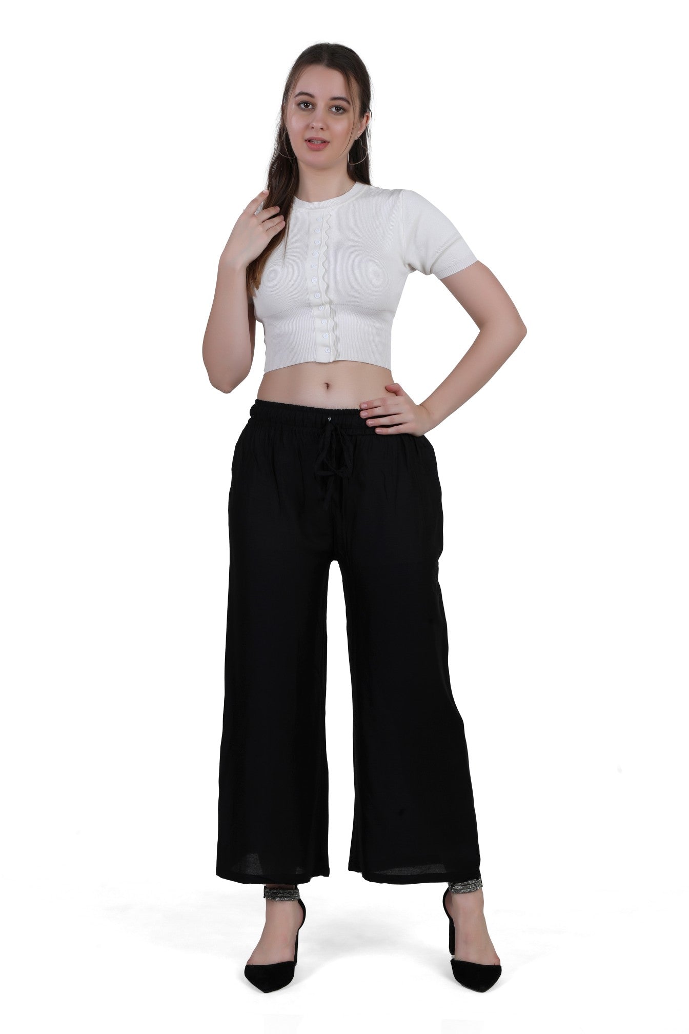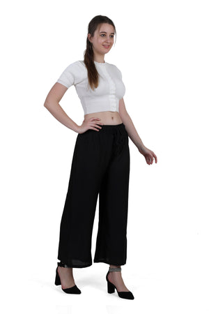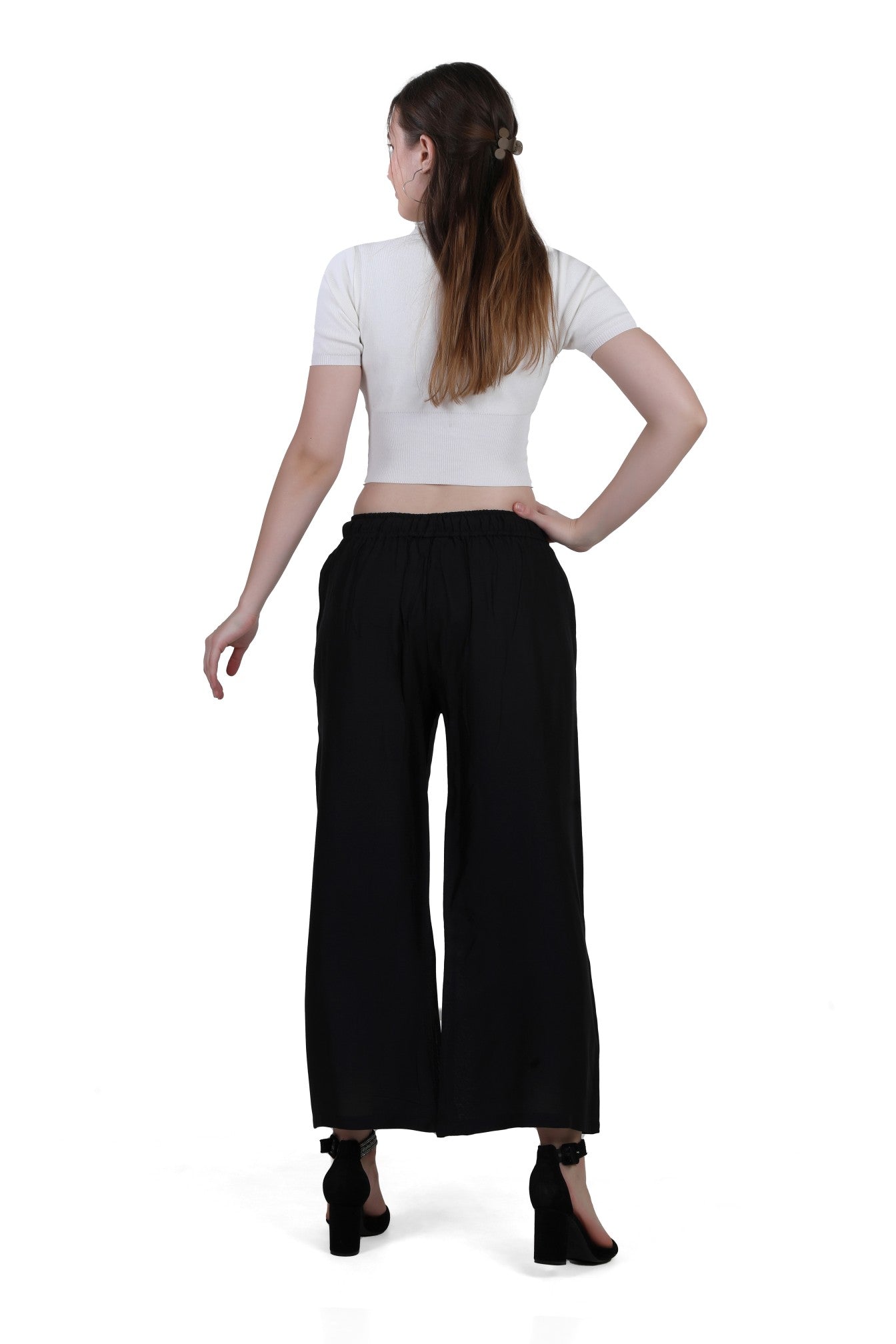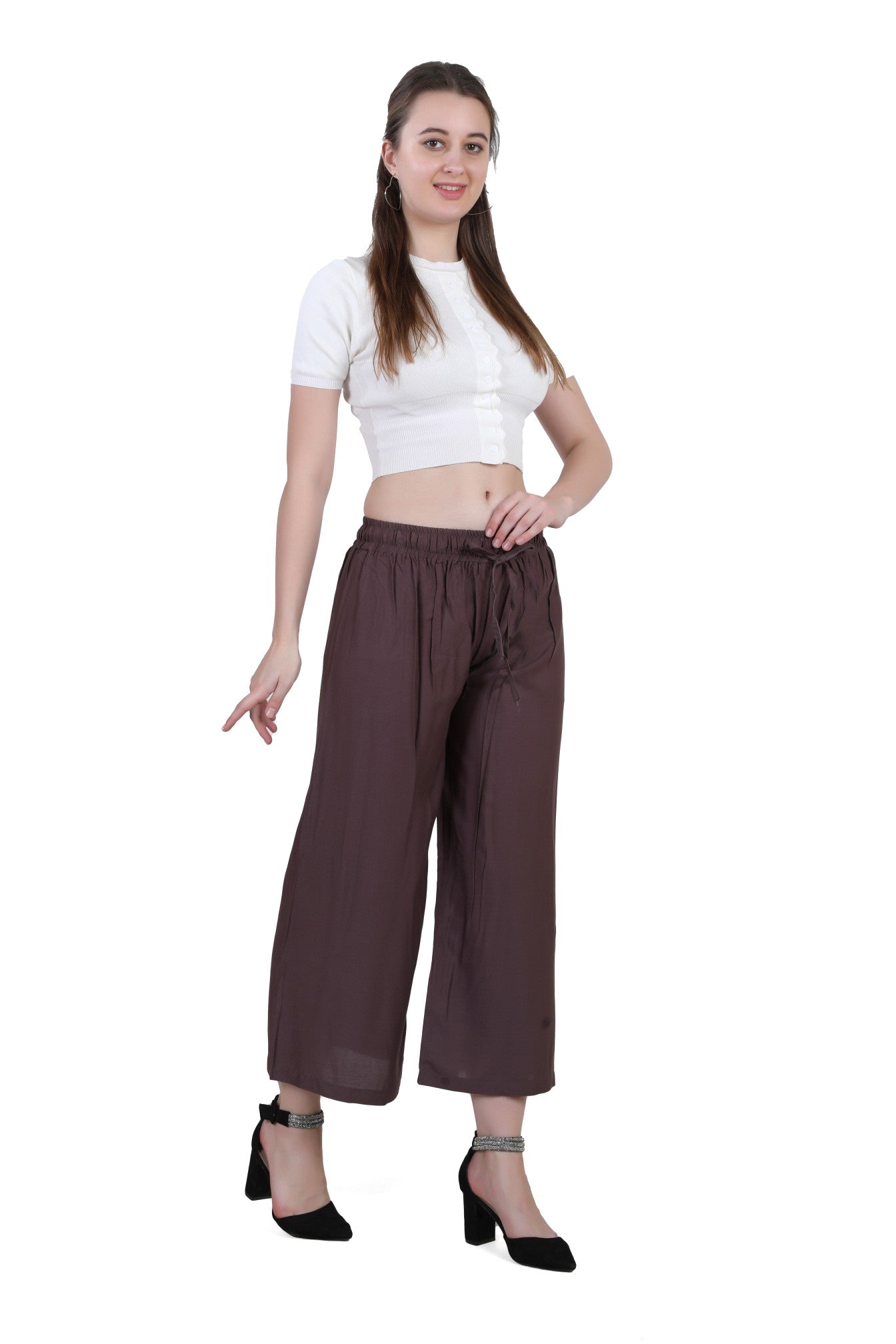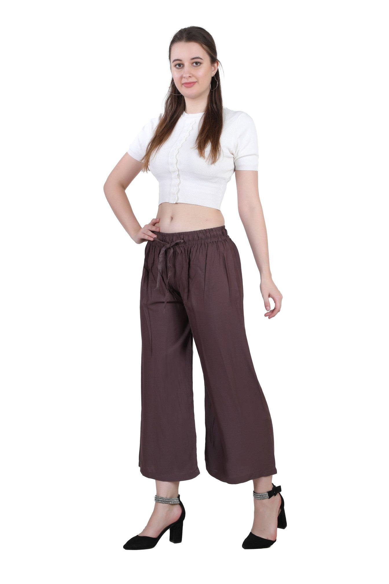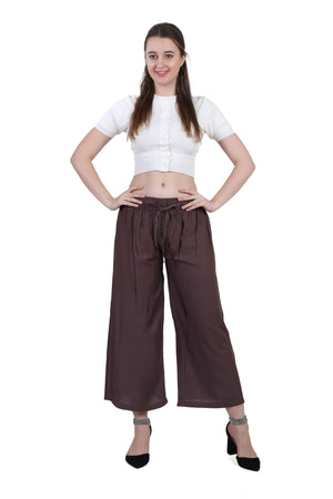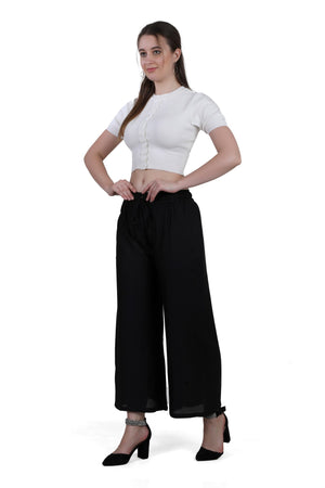 Refresh your everyday wardrobe with these effortlessly stylish palazzo pants from AIKAA. Designed with a wide-leg silhouette, this pair offers a perfect balance of comfort and elegance, making it a versatile addition to your collection. Crafted from soft, breathable fabric, these palazzo pants ensure ease of movement and all-day comfort. The elasticated waistband provides a secure yet flexible fit, while the flowy structure creates a graceful drape that complements different body types. Easy to style and suitable for multiple occasions, these palazzos pair beautifully with crop tops, kurtis, tunics, shirts, or ethnic wear, making them a must-have for modern, everyday dressing.