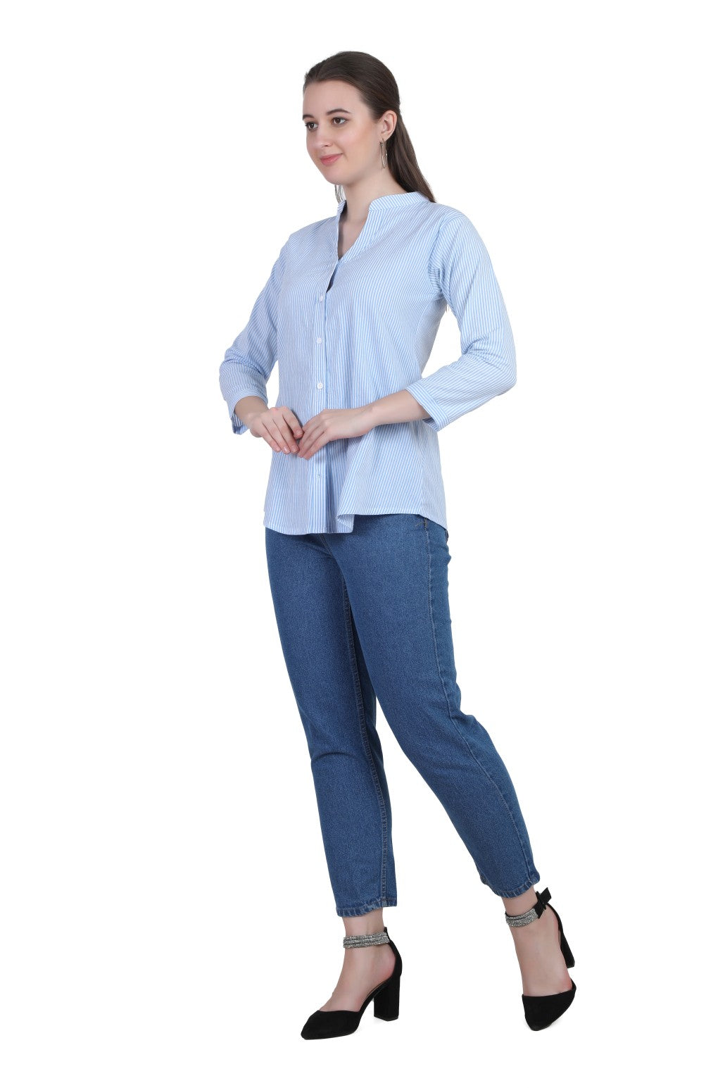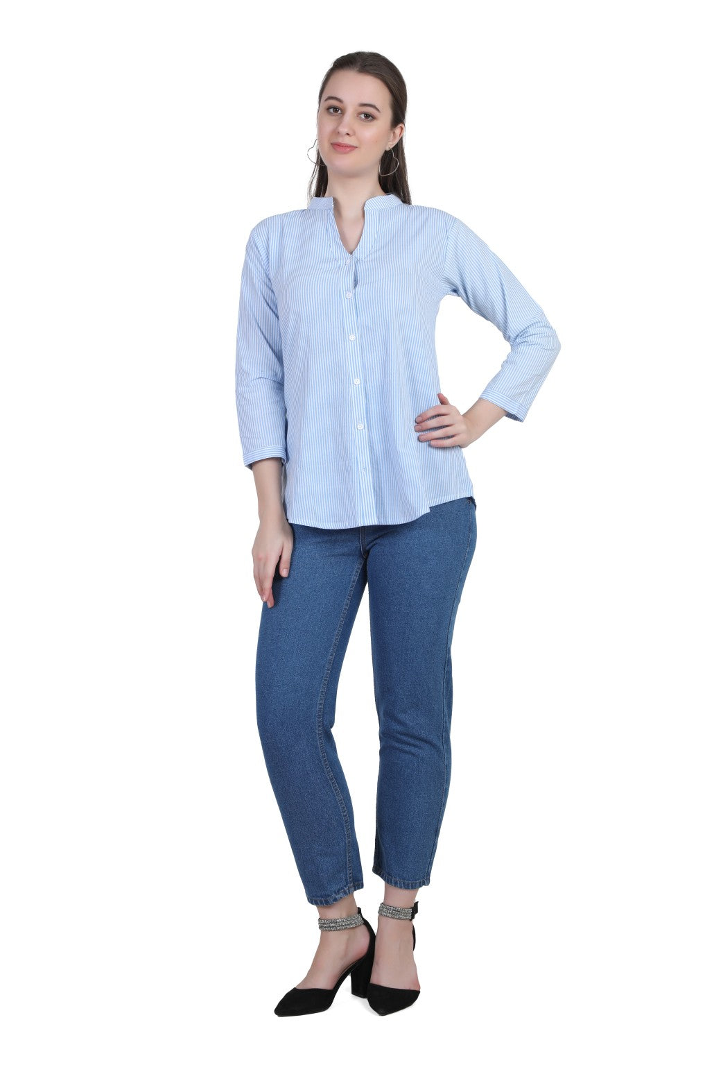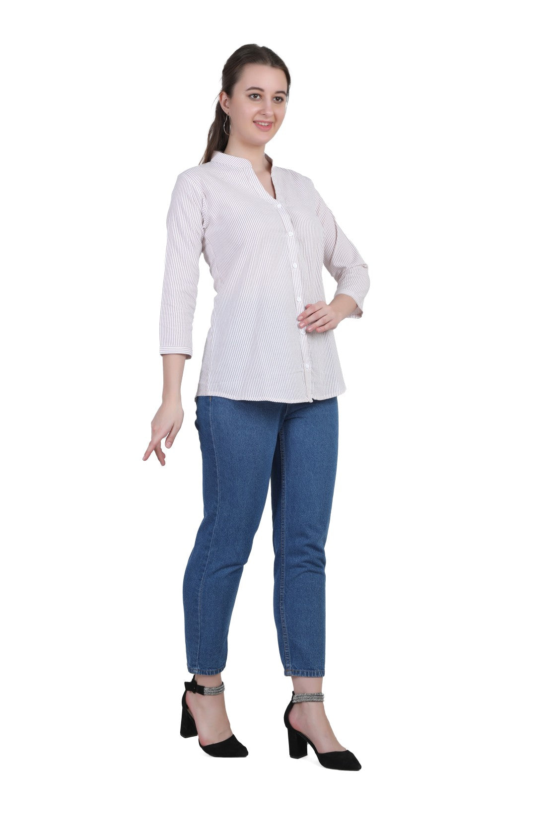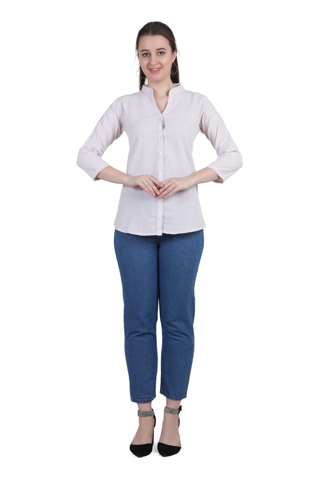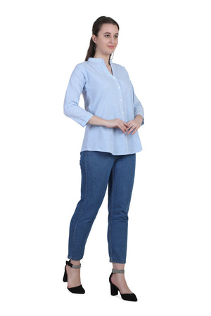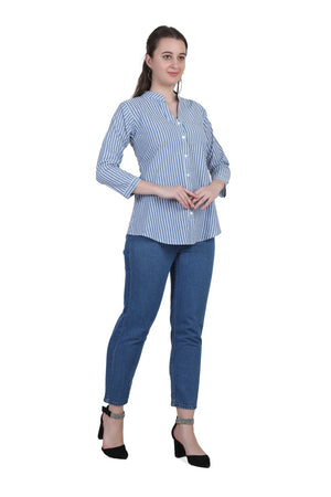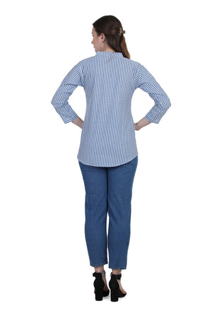 Refresh your everyday wardrobe with the AIKAA Women’s Striped Casual Top, crafted for comfort and effortless style. Made from breathable cotton fabric, this top features a classic vertical stripe pattern that gives a clean and polished look. The mandarin collar with a front button placket adds a modern touch, making it suitable for office wear, casual outings, and daily use. Pair it easily with jeans, trousers, or leggings for a versatile and comfortable outfit.